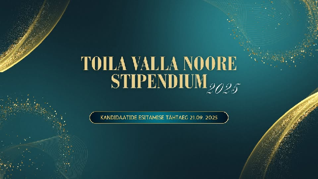Toila valla noore stipendiumi saaja kuulutatakse välja valla aastapäeva kontsertaktusel 10. oktoober 2025.